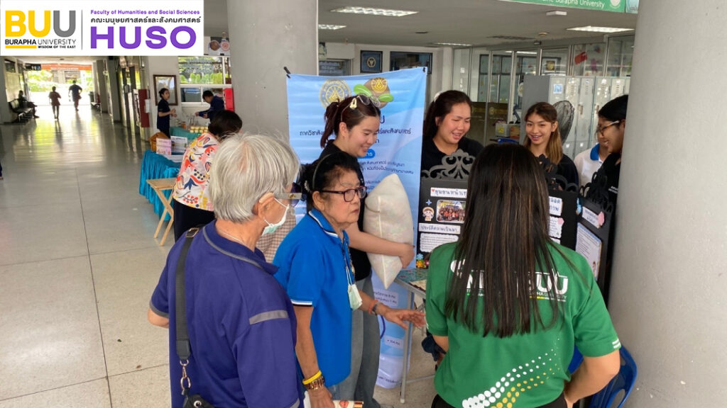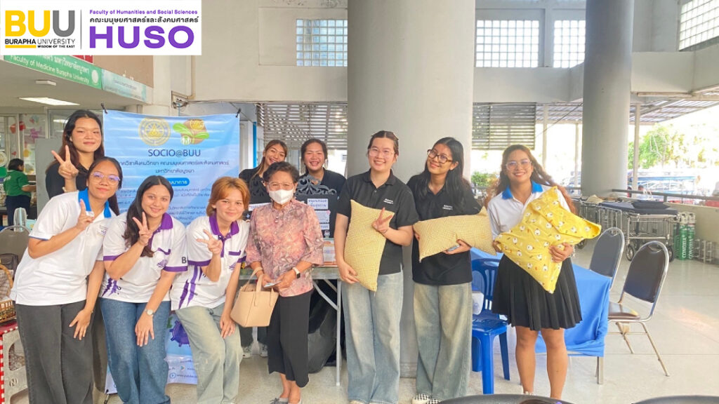 The Bachelor of Arts Program in Social Service Management, Department of Sociology, Burapha University, offers a course titled Social Service Lab, which aims to develop students’ skills in social service management and collaboration with communities surrounding the university. As part of this course, third-year students implemented a project titled “Social Service Provision for the Community in Front of Saensuk Municipality”, a community with strong potential in producing recycled-material goods. In particular, the project worked with a group of women who collaborate to create “straw pillows” as a source of income. The project focused on logo design, online media promotion, and organising a sales booth to build a unique identity, add value, and expand the market for the community’s products. This initiative aligns with the Sustainable Development Goals (SDGs), specifically: SDG 1: No Poverty, by supporting community income generation, and SDG 5: Gender Equality, by promoting women’s roles in sustainable community-level economic development.