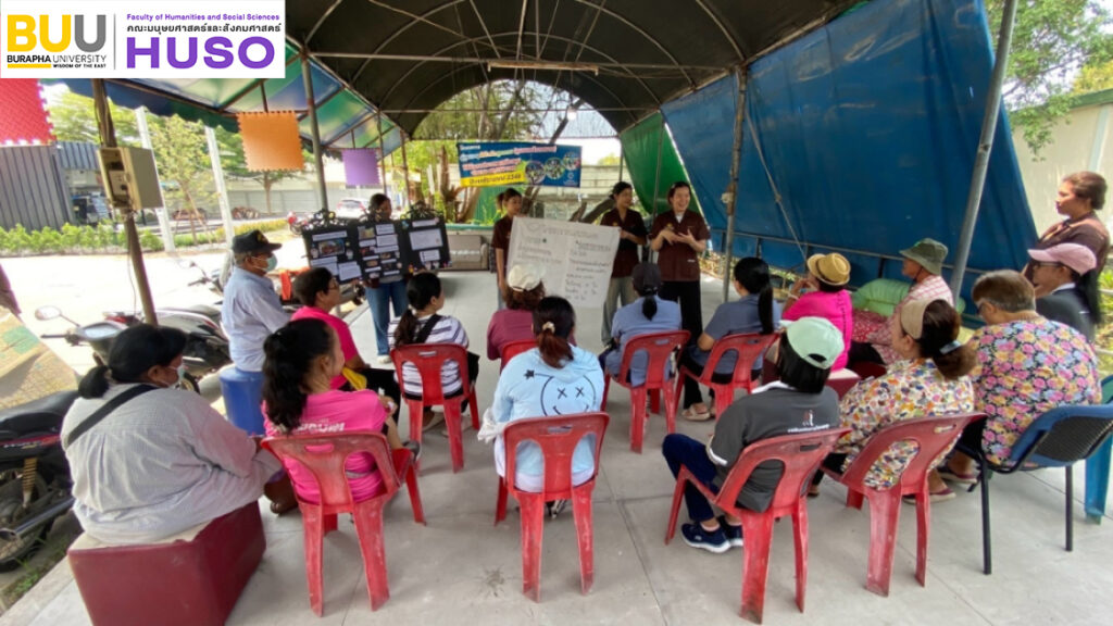 Third-year students majoring in Social Service Management, Department of Sociology, Burapha University, conducted fieldwork in the Saensuk Municipality community to gain an understanding of its context and design appropriate social services. A public forum was organised under the theme “Exploring Community Potential for Sustainable Development,” involving community members and faculty.