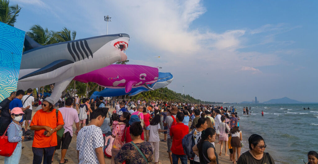 The Faculty of Fine and Applied Arts, in collaboration with various organisations, including Chonburi Provincial Administrative Organization, Saensuk Municipality, the Office of Contemporary Art and Culture (Ministry of Culture), the Creative Economy Agency (CEA), Chonburi Provincial Tourism and Sports Office, the Tourism Authority of Thailand (Pattaya Office), the Chonburi Provincial Cultural Office, the Association for the Promotion and Development of Photography, Panasonic Lumix, and local hotels, restaurants, and cafés organised The 4th Bangsaen Gallery 2025, featuring the following activities: ART IN CAFÉ & HOTEL: Brought art and culture to the public and tourists by integrating artistic and cultural exhibitions into Bangsaen’s Café Hopping culture, displaying works in cafés, restaurants, and hotels. MUSIC & PERFORMANCE: Showcased musical and performance art that reflected cultural heritage, engaging audiences in restaurants and cafés. ART WORKSHOP: Provided educational sessions on various aspects of art and design to festival attendees. FILM ON THE BEACH: Featured screenings of movies on the sandy shores of Bangsaen Beach. ART BIKE TOUR: Offered a guided cycling tour featuring art installations and cultural activities along designated routes, promoting both physical and mental well-being. ART TALK: Created a platform for local artists to foster an Artist Ecosystem. The 2025 theme was “Creative City Development Through Art in Eastern Coastal Tourist Destinations.” INTERNATIONAL KITE FESTIVAL: Thai Kite Competition, a key event in the Inflatable Kite Show: “Drifting on the Wind: Admiring the Charm of Thai Kite Culture”.