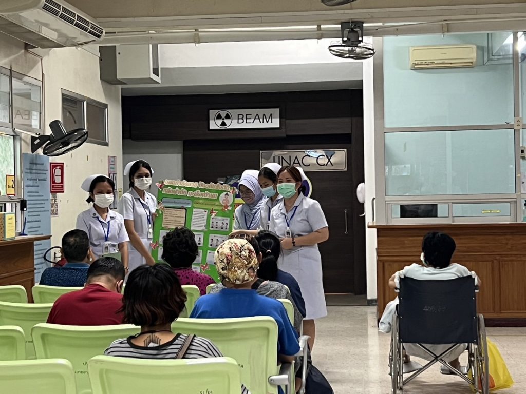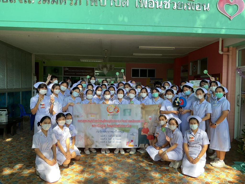 Cancer is a chronic disease that threatens lives and is the leading cause of death in Thailand. Despite significant advancements in treatment technology, new cases of cancer continue to increase every year. Even though modern medical technology has made great strides, cancer patients still have to endure the suffering caused by the disease. The Faculty of Nursing at Burapha University recognizes its role as an educational institution responsible for producing professional nurses. As a result, they have initiated a collaborative academic service project with Chonburi Cancer Hospital, focusing on ‘Care for Adult Patients with Acute, Chronic, and End-of-Life Conditions in Cancer Patients.’ The project aims to provide participants with knowledge and understanding of caring for adult patients with sudden, chronic, and end-of-life conditions in cancer patients, as well as their families who seek services at Chonburi Cancer Hospital. The project also aims to empower participants to practice self-care to prevent complications, promote health, and achieve basic health recovery. These efforts will ultimately contribute to improving the quality of life for both cancer patients and their families.