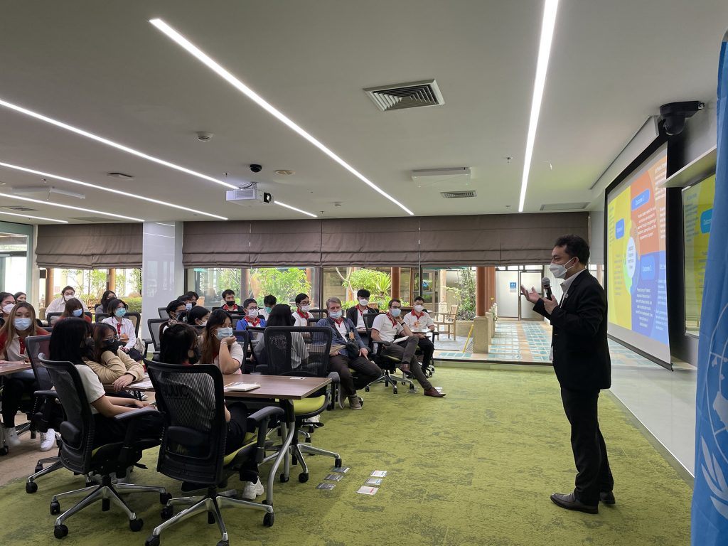 On 21 November 2022, Ajarn Jeremy Proces, Ajarn Waraporn Theerasak, Dr. Charlton Bruton & Dr. Monparath Charatwattananich took 40 BUUIC students from the BA programme to visit the United Nations Development Programme (UNDP) in Bangkok. The UNDP is one of the many United Nations agencies in Bangkok and its work focuses on reducing inequalities and promoting global peace through the implementation of the Sustainable Development Goals (SDGs) The SDGs are fully integrated into BUUIC’s vision and we strongly believe that our students are, first and foremost, citizens of the world. During the field trip, students had the opportunity to learn more about the work of the United Nations in Thailand, the Sustainable Development Goals (SDGs) and how they will impact their future and the Thai society. Thank you to the UNDP team for hosting our students and giving them this wonderful opportunity. Thank you to our teachers for organizing this field trip. ‘We cannot always build the future for our youth, but we can build our youth for the future.