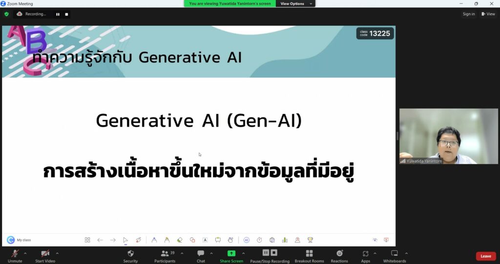 The aim is to enhance the knowledge and understanding of teachers, lecturers, and educational staff in utilizing Generative AI as a tool for work and teaching management. In this training session, participants learned about various Generative AI tools such as ChatGPT, Google Bard, Adobe Firefly, Midjourney, Canva, Speechify, Botnoi Voice, D-ID, and the limitations and precautions in using these technologies. Additionally, they acquired the ability to apply this technology in instructional design effectively.