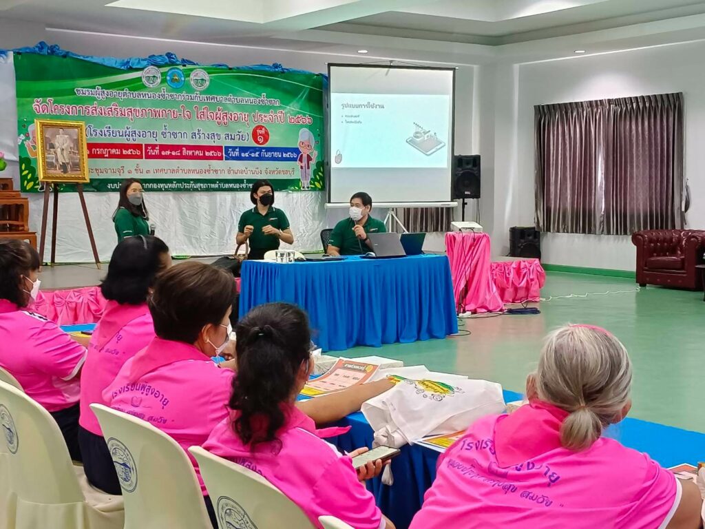 and A knowledge-sharing project for the elderly, “Elderly Online with a Smile,” was organized by the Computer Center in collaboration with the Senior Citizens Club of Nong Samak Municipality and Nong Samak Municipality, Ban Bueng District, Chonburi Province. The event took place on September 15, 2023. This project aims to make the elderly aware of the risks associated with cyber activities, including various cyber threats. Additionally, the project provides information on preventive measures against potential dangers. Participants also had the opportunity to exchange and learn from their own experiences or stories, fostering collective learning. The project raises awareness and educates the elderly on protecting themselves from cyber threats.