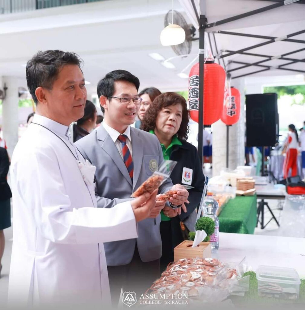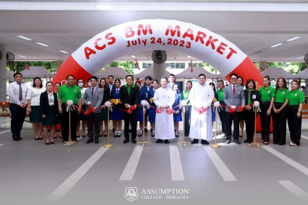 On July 24, 2023, Assistant Professor Dr. Parinya Nakpathom, who serves as the Dean of Burapha University International College, and Assistant Professor Dr. Krittipat Pitchayadejanant, the Associate Dean responsible for Administration and Organization Development, were graciously invited to inaugurate the ACS Business Management Market at Assumption College Sriracha, where they also serve as program consultants. BUUIC was approached to provide consultancy services for the establishment and continuous improvement of the Business Management Program at Assumption College in Sriracha. Currently, this program boasts the highest enrollment numbers among all programs at Assumption College Sriracha, consistently being the preferred choice of students and their parents. We take immense pride in our ability to offer valuable guidance throughout the program’s evolution, which has resulted in its remarkable success. During this market event, students showcased their products and elucidated how these offerings could be further developed for future market utilization.