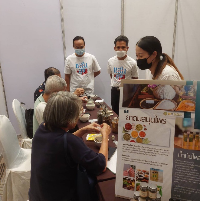 The herbal medicine exhibition aims to provide knowledge about the properties of various herbs used as ingredients, methods of preparation, and various recommendations and encourage participants to make herbal medicines themselves. This will enable participants to apply the knowledge gained and prepare simple herbal medicines at home. In addition to receiving self-prepared herbal medicines, participants will also receive essential oils prepared by the faculty for use in massages to relieve fatigue, insect bites, and stings.