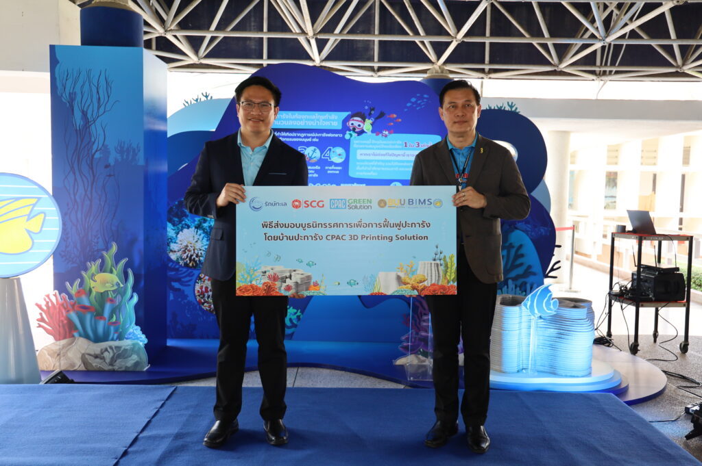 For this reason, the Marine Science Institute, SCG; the Company for Production of Products and Construction Materials Limited, in collaboration with the Department of Marine and Coastal Resources, Ministry of Natural Resources and Environment, the Faculty of Veterinary Science, Chulalongkorn University, and the Earth Agenda Foundation, have initiated the “Save Our Seas” project to restore coral reefs, which are vital marine resources. This project utilizes “coral nurseries” (3D Printing-based artificial coral nurseries) to facilitate the growth and development of coral larvae, creating aesthetically pleasing, spherical structures resembling real coral reefs. These nurseries are environmentally friendly and conducive to marine life, fostering biodiversity and organizing educational activities to raise awareness and instil a love for the sea among the general public. The project aims to disseminate knowledge about coral reefs and coral reef restoration to the public.