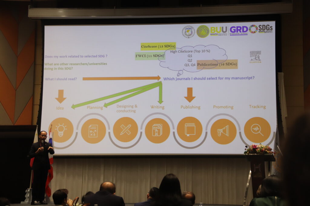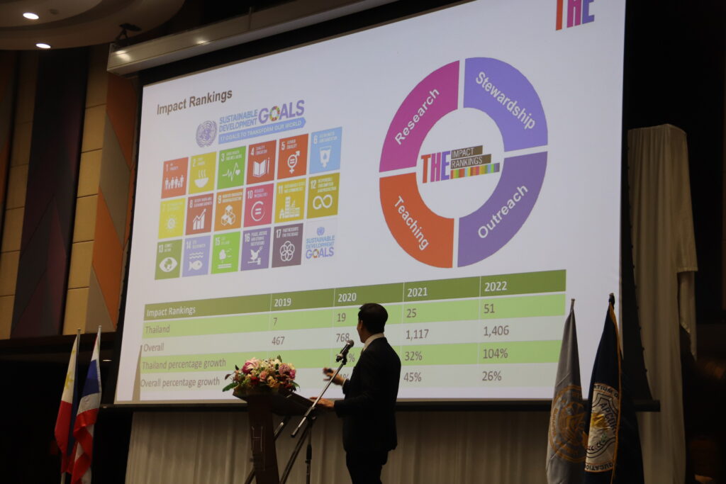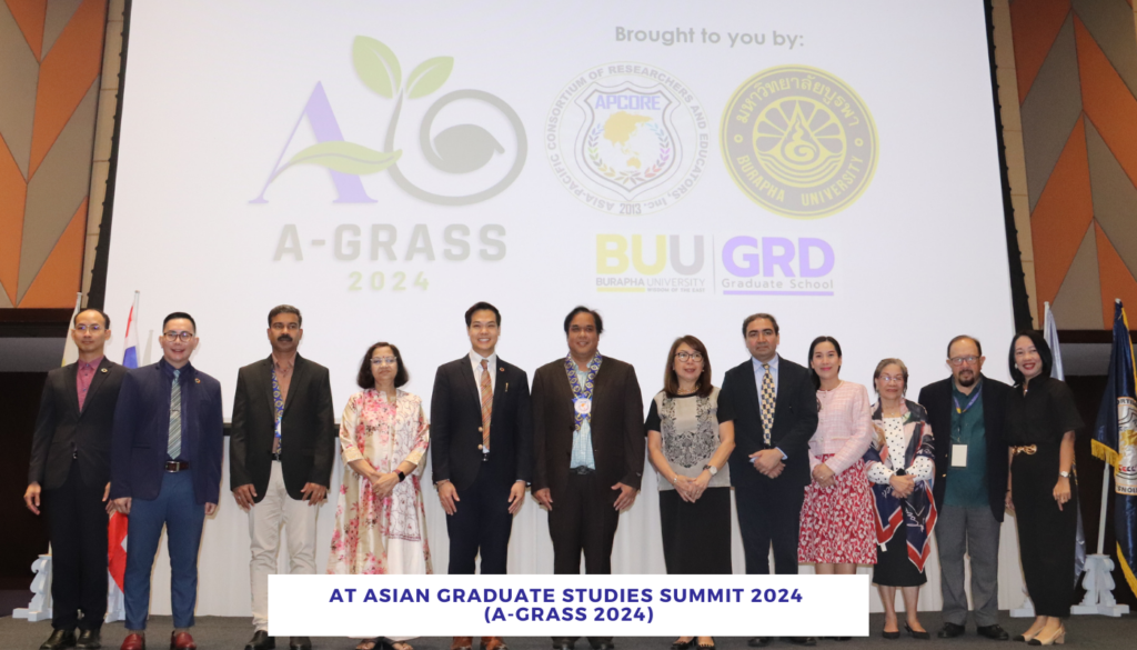On April 4, 2024, Assoc. Prof. Dr. Witawat Jangiam (Dean of the Graduate School), Asst. Prof. Supphasin Thaweesak, (Vice-Dean for Strategic Planning, Research, and International Affairs and Research) received an invitation to speak at The Asian Graduate Studies Summit 2024 (A-GRASS 2024) at the Bangsaen Heritage Hotel in Chonburi Province about the significance of the Sustainable Development Goals (SDGs) and THE Impact Rankings. By providing instances of Graduate School operations at Burapha University that align with the Sustainable Development Goals. As well as exchanging knowledge in activities in the creation of policies that will support the SDGs. Along with exchanging research experiences, publishing research articles in the SCOPUS database that align with the Sustainable Development Goals. They also provided examples of significant research and activities. There were executives from colleges and universities, professors, graduate students, and more than 400 researchers from 67 institutions around the world.