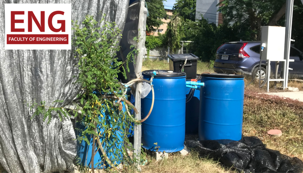 Due to global warming and industrial expansions, a water shortage is expected in Thailand’s Eastern Economic Corridor (EEC). The water demands are predicted to be increased for industries, decreasing water supply availability for residential areas and agricultural uses. To increase the availability of drinking water for residential areas and produce liquid fertilizers for the agriculture sector, a small Moving Bed Biofilm Reactor (MBBR) wastewater treatment system was developed and built economically and environmentally by Dr. Tongchai Sriwiriyarat and Dr. Chanyut Kalakan, associate professor and assistant professor from the Faculty of Engineering, Burapha University, respectively, with assistants from his colleague to treat the wastewater from a building of Piboonbumpen Demonstration School, Burapha University, for reusing effluent for agricultural uses. The treated effluent contains nutrients, including nitrogen and phosphorus, without minimal suspended solids; therefore, the effluent can be used as plant fertilizers. The objectives were to reduce water supply demand for watering plants, thus increasing water availability for drinking water. However, the effluent can be further treated to meet the requirements for other reusing objectives. The minimal reusing of wastewater from each building and household would contribute to the saving of water supply; therefore, the water shortage for drinking water can be minimized, reaching the target of sustainable development goals (SDGs) 6 of water and sanitation.