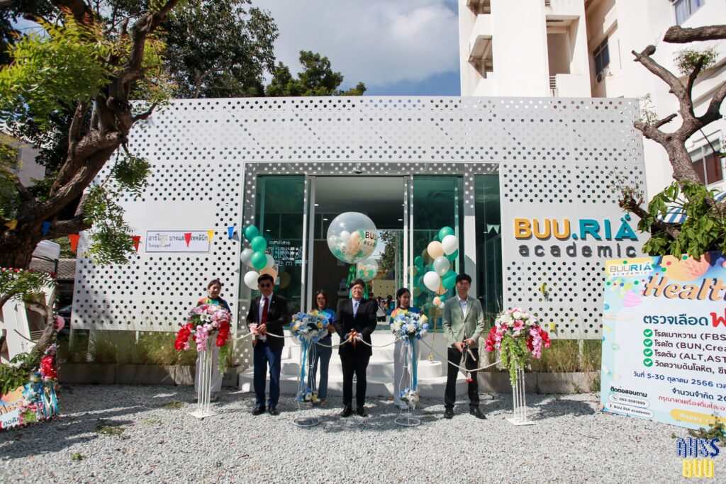 Faculty of Allied Health Sciences, Burapha University, has a vision of being “a leading producer of healthcare professionals in Thailand, distinguished in wellness sciences.” Under the leadership of Asst. Prof. Dr. Marut Tangwattanachuleeporn, Dean, and in collaboration with RIA Laboratory Co., Ltd., signed a memorandum of understanding (MOU) on May 11, 2022. The company invested in the construction of the BUU RIA Academic Multi-Clinic for Medical Technology and Radiologic Technology, with a value of over 15 million baht, on the vacant land of the Medical Science Building at the Faculty of Allied Health Sciences, Burapha University. The construction has now been completed.
