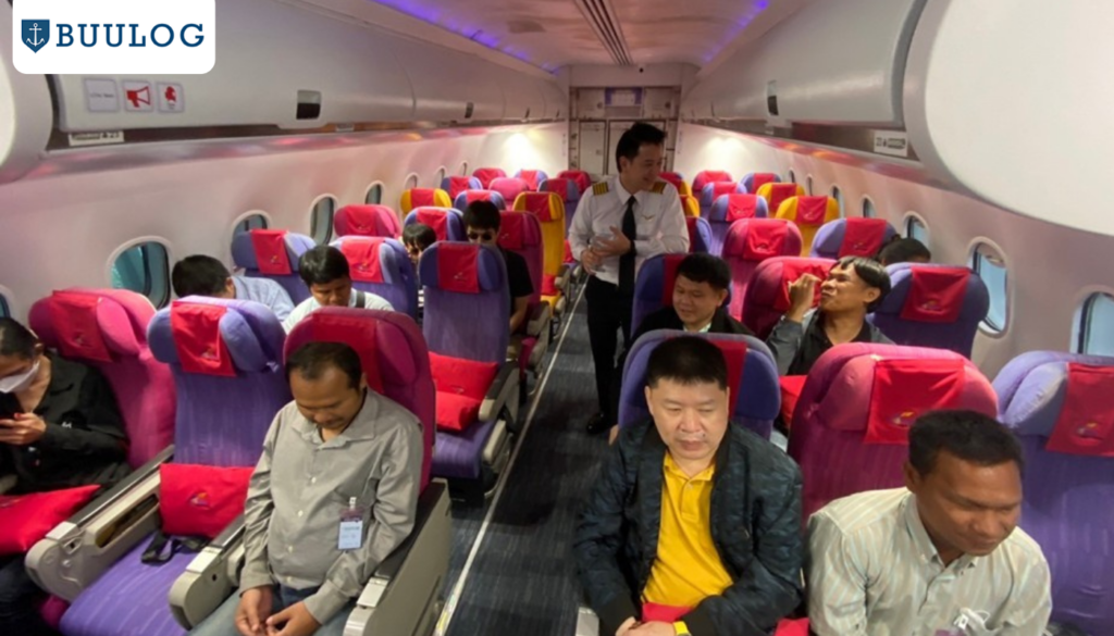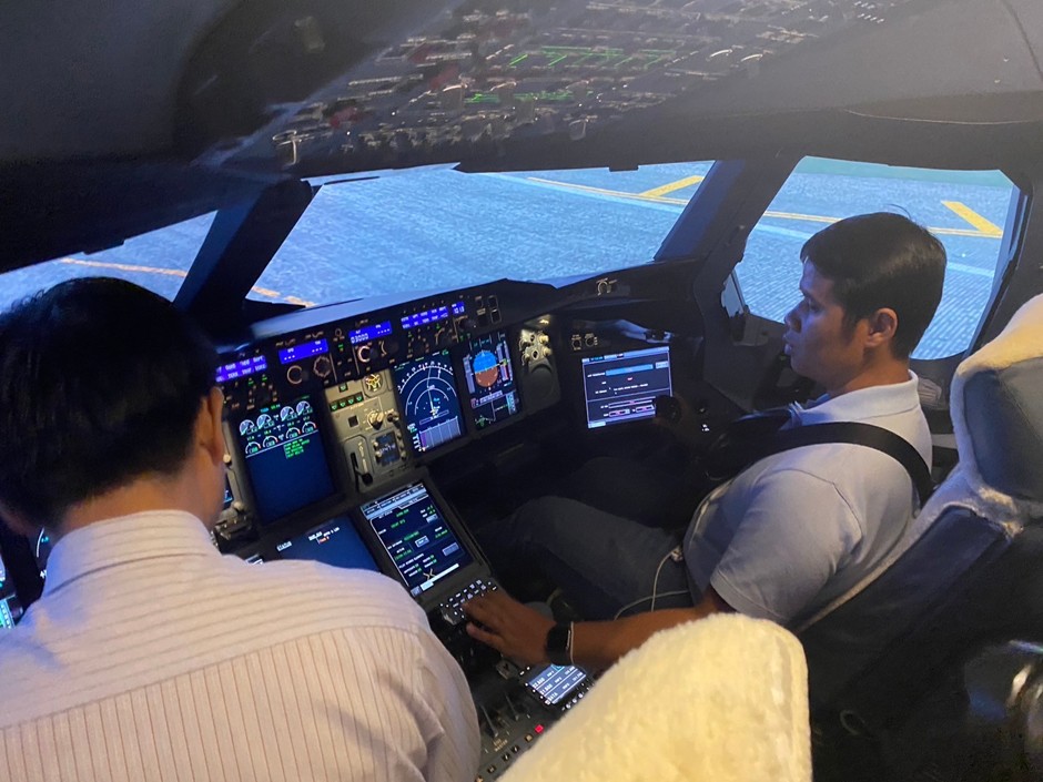 Fifteen visually impaired individuals participated in this activity, with two academic staff from the Faculty of Logistics, Asst. Prof. Dr. Matthaya Yuvamit and Instructor Pilot Tapsatit Gooncokkord are serving as volunteers. Their responsibilities included guiding the visually impaired participants into the cabin of a flight simulator, an aviation training device that simulates the actual movement of an airplane.