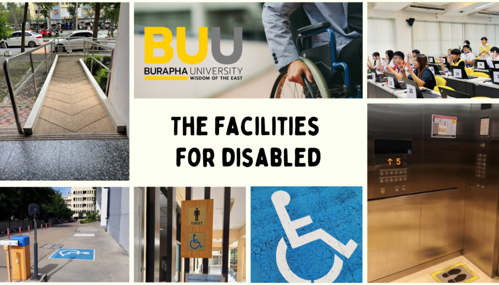 Burapha University recognizes the inequality of people with disabilities, so it aims to improve the quality of life for those who require special assistance. The university aims to develop public facilities to accommodate people with disabilities, such as accessible toilets, wheelchair ramps, and wheelchair platform lifts.