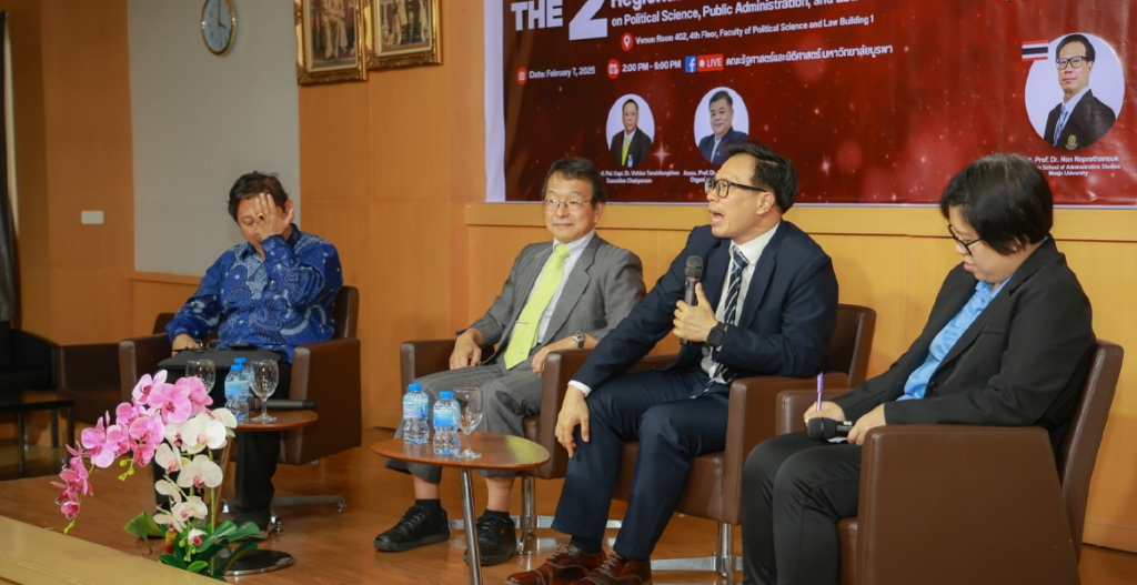 The 2nd Regional Academic Seminar of the Educational Network in Political Science, Public Administration, and Law was conducted through lectures, panel discussions, and knowledge-sharing sessions among faculty members, scholars, and students from various academic institutions, both domestic and international. The seminar featured distinguished international experts who provided insights and presented Best Practices, which could be adapted to enhance curriculum development and teaching methodologies. Key topics discussed included public administration in the digital era and regional security enhancement. Additionally, the seminar incorporated networking activities to strengthen academic collaboration among participating institutions. This initiative utilized a lecture-based and interactive knowledge exchange format, facilitating the advancement of academic knowledge and fostering international and regional academic partnerships.