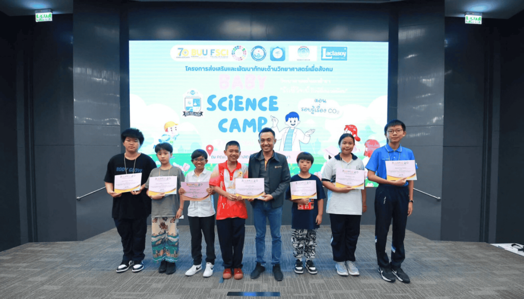 The year 2025 marks three significant milestones: the auspicious occasion of Her Royal Highness’s 70th birthday; the 12th anniversary of the “Thailand Children’s University Project”; and the 70th anniversary of the founding of Burapha University. To commemorate these events, the Faculty of Science has launched the CSR initiative to share scientific knowledge and promote skill development among young learners through the “Baby Science Camp” under the theme “Beyond the Textbook: Love Biology, Care for the Environment”, with a focus on CO₂ Awareness. The event was held on April 27, 2025, at the Basic Laboratory and Scientific Instrumentation Center, Faculty of Science, Burapha University, and welcomed 70 students from upper primary and lower secondary school levels.